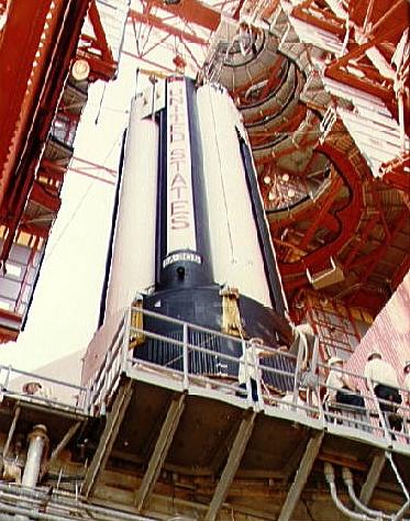 ![]() | Apollo 7 - KSC Pad 34 showing erection of first stage of Saturn 205 launch vehicle - Credit: NASA.> |