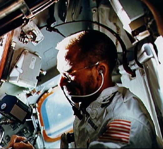 ![]() Walt Cunningham aboard Apollo 7, October 1968. - Photo credit: NASA |