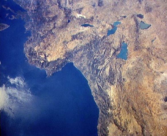 | STS-41-G - Gulf of Antalya, Southern Turkish Coastline - Credit: NASA. 60,724 bytes. 585 x 585 pixels. |