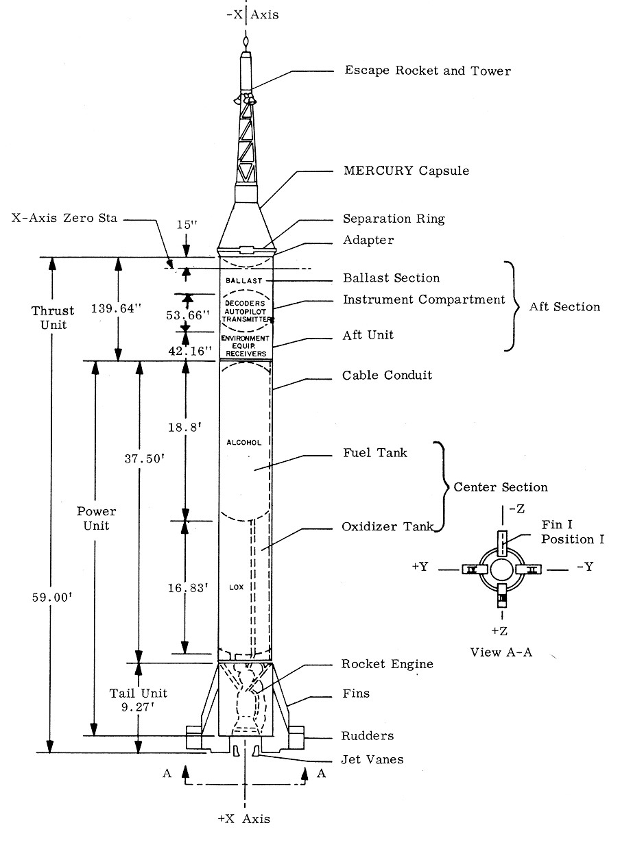 ![]() Diagram of the Redstone-Mercury rocket.(NASA) |