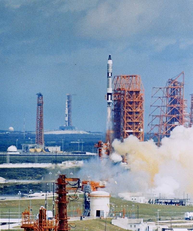 ![]() Liftoff Gemini 11 from pad 39A. In the background is Saturn V SA-500F visible |