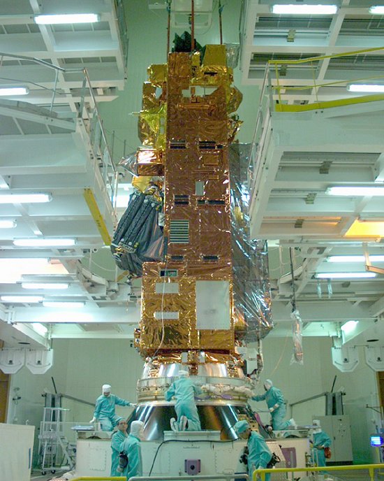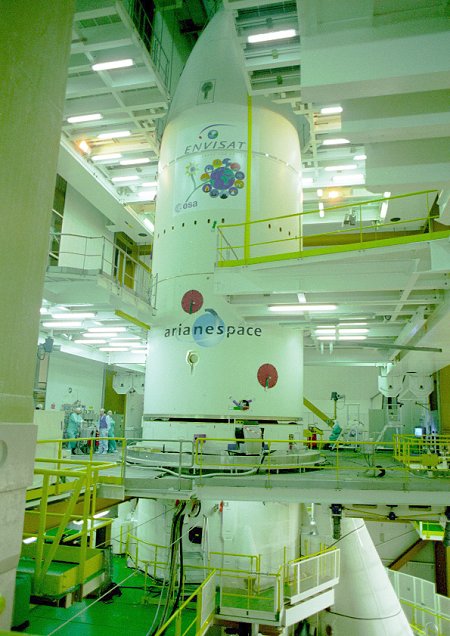 is lowered over the Envisat satellite as the encapsulation