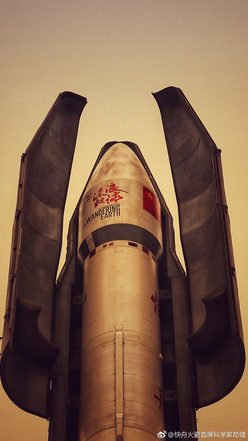 ![]() This rocket is promoting for this year′s Chinese sci-fi film "The Wandering Earth" (available on Netflix) on its fairing and rocket transport canister. |