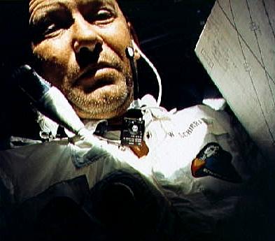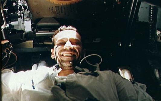![]() Walt Cunningham aboard Apollo 7, October 1968. - Photo credit: NASA |