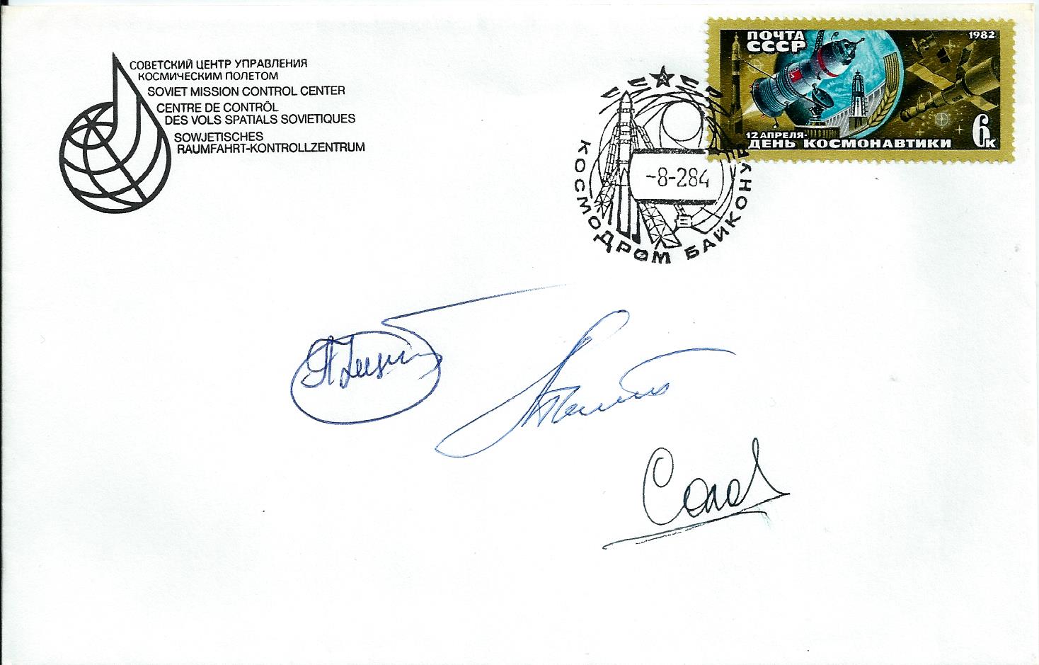 Manned three crew. Docked with Salyut 7. Transported a crew consisting of ship's commander L D Kizim, flight engineer V A Solovyov and cosmonaut-research O Y Atkov