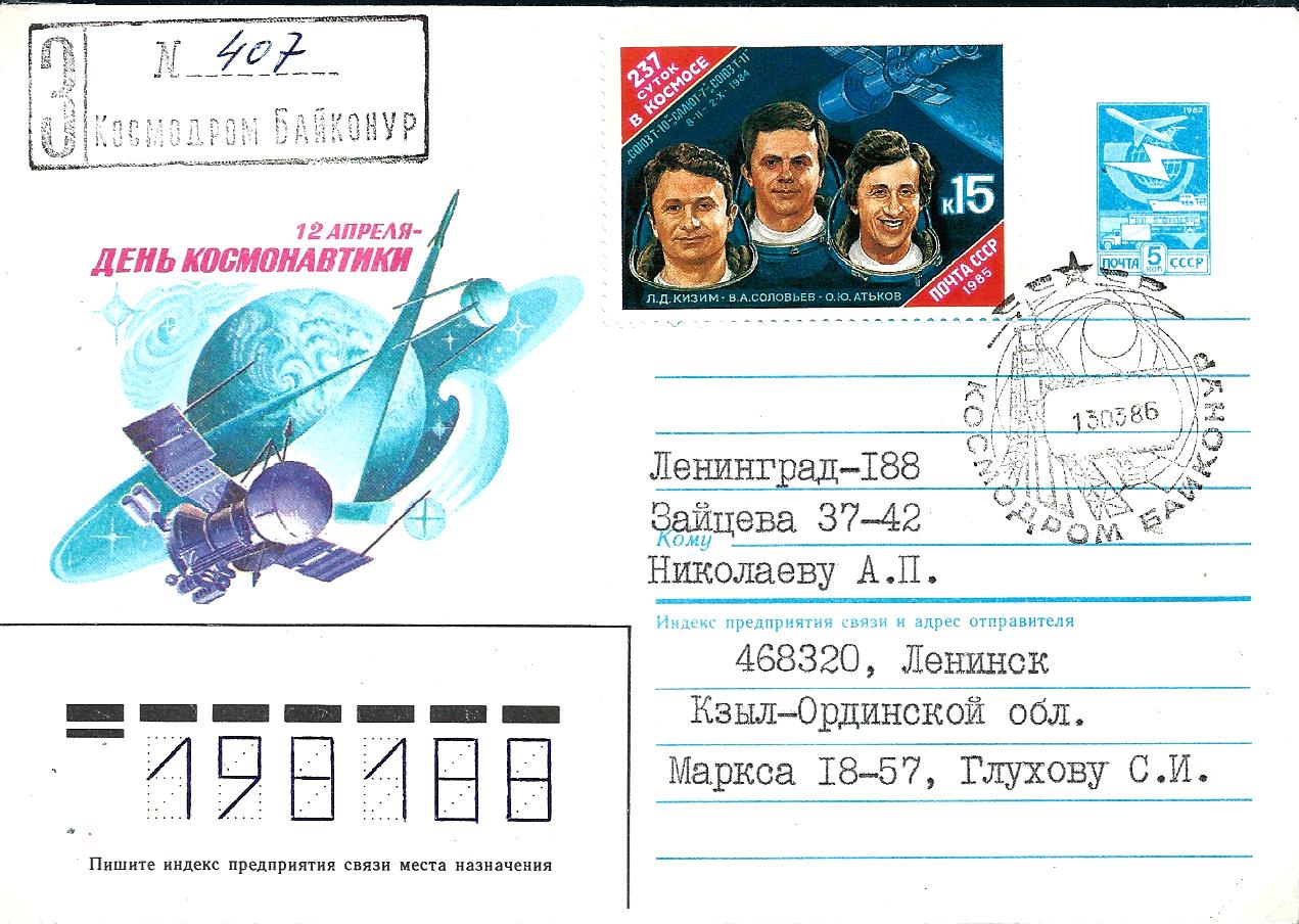 Epic repair mission. Crew comprising ship's commander L D Kizim and flight engineer V A Solovyov first docked with the Mir orbital station to conduct scientific and technical studies and experiments. Mir then maneuvered 17 April to match Salyut 7 at 4000 km separation, then again on 4 May to catch up. After six weeks aboard Mir, Soyuz T-15 undocked on 5 May, then rendezvoused with the dead Salyut 7 station. Only docking to date by a single spacecraft with two space stations. After manual docking with inoperative Salyut 7, the station was found to be ice bound and without electrical power. Crew repaired the station, regaining power, heat, and environmental control. Removed experimental results left behind by last crew. Undocked Salyut 7 on 25 June, and redocked with Mir on 26 June. Recovered July 16, 1986 12:34 GMT.