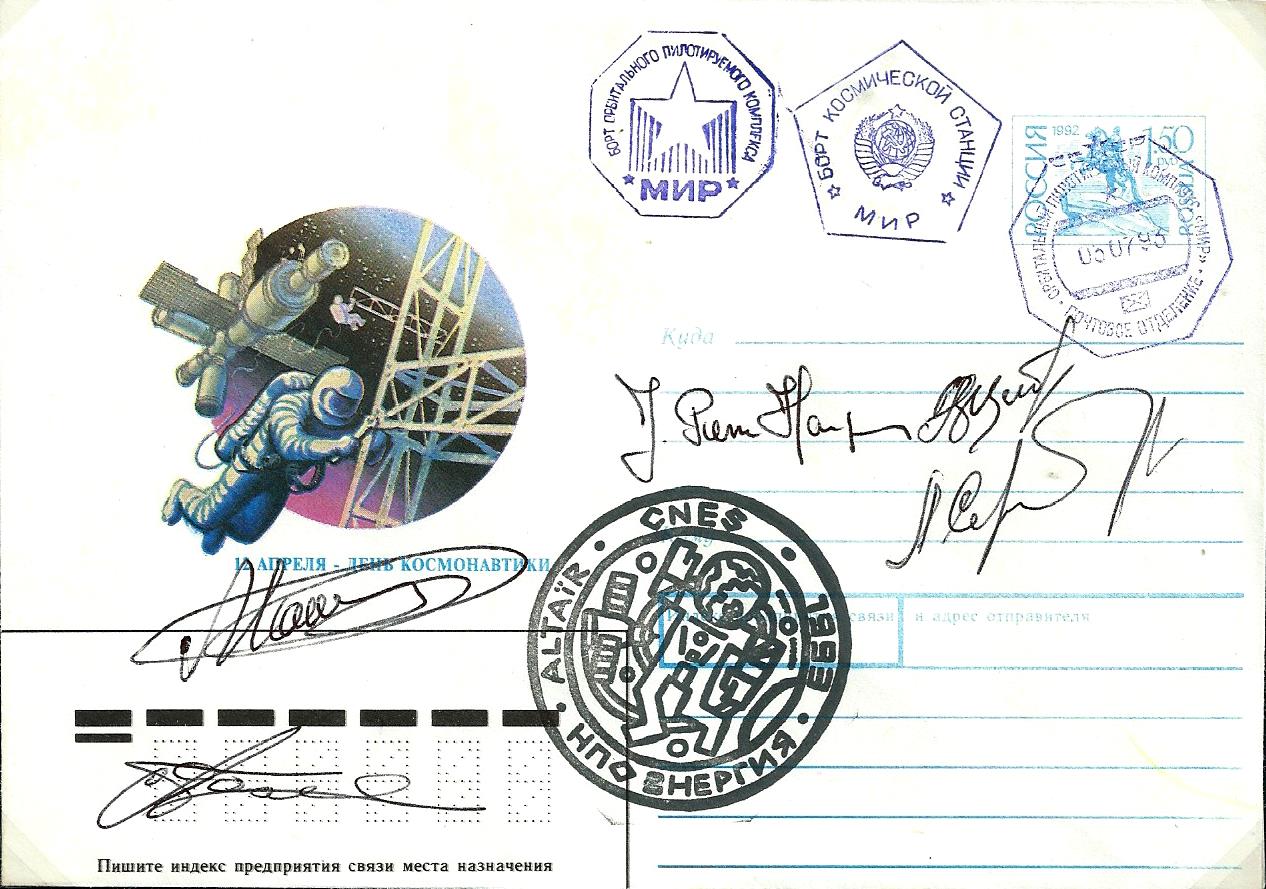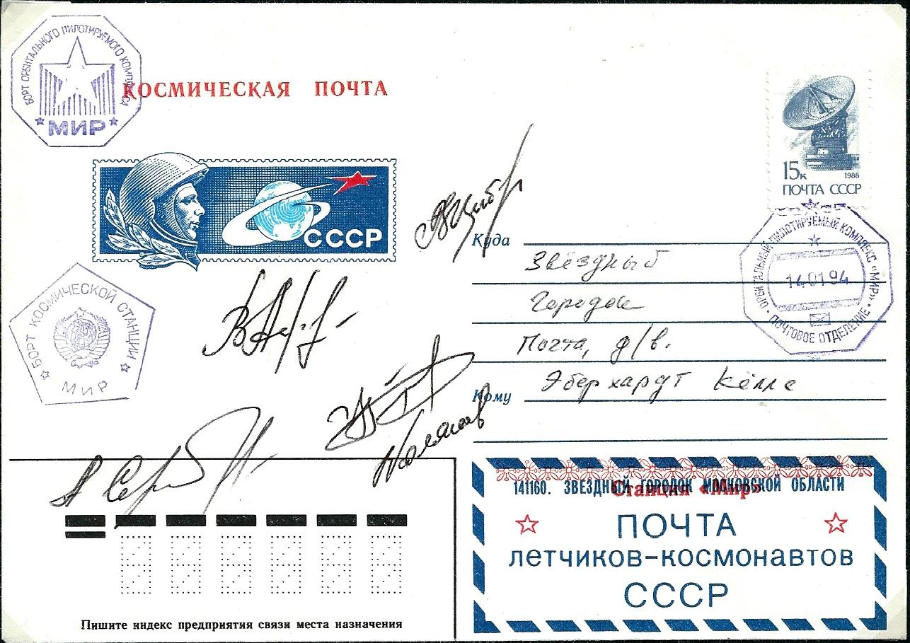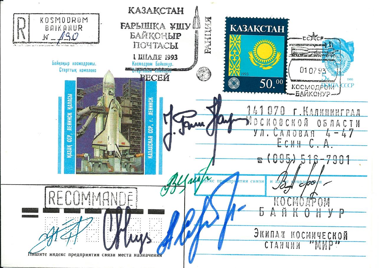 ![]() Launch cancel and special cancel Baikonur, signed by crew and backup. |