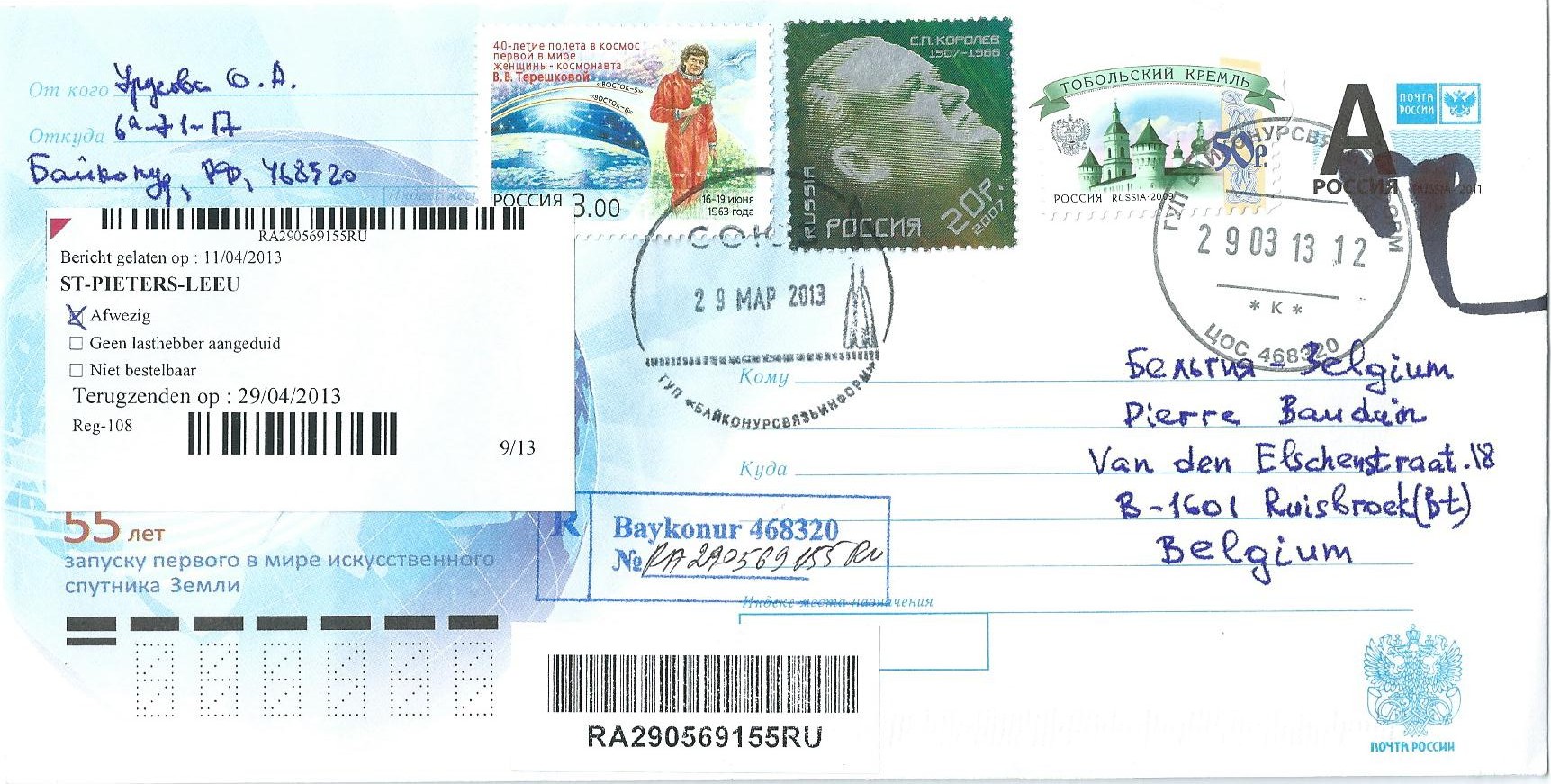 ![]() Launch cancel Baikonur, registered mail |
