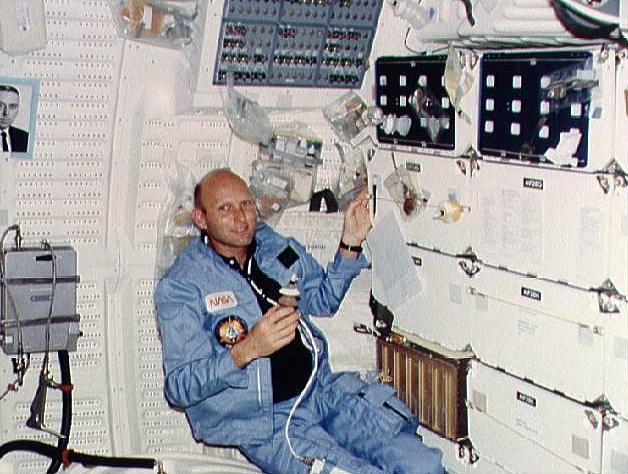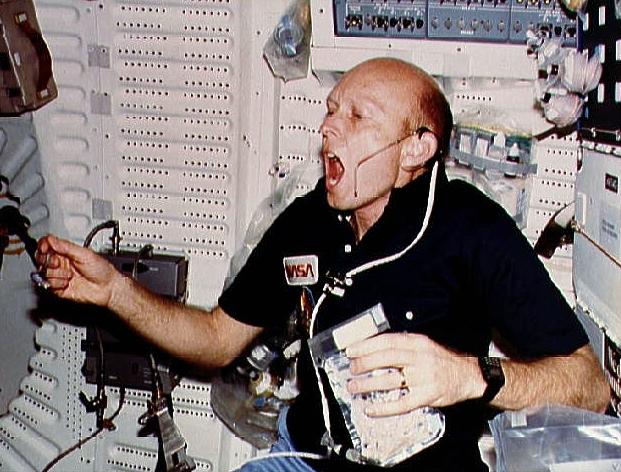STS-3 - Pilot Fullerton eats on middeck - Credit: NASA.