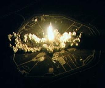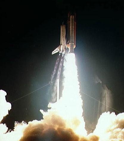 | STS-33 - Aerial view of STS-33 Discovery, OV-103, lifting off from KSC LC Pad 39B - Credit: NASA. 12,455 bytes. 342 x 342 pixels. |