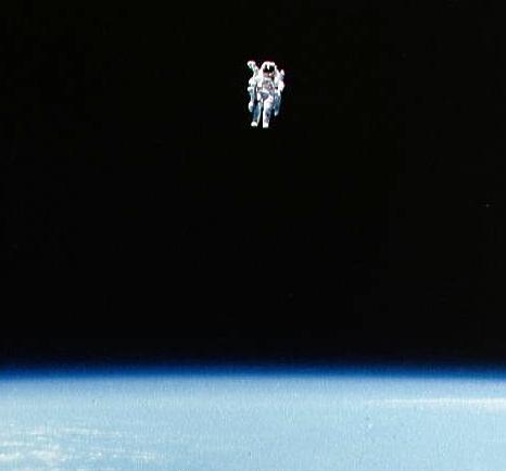 STS-41-B - View of Astronaut Bruc McCandless during EVA - Credit: NASA. |