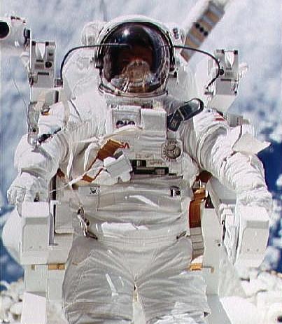 STS-41-B - Views of the extravehicular activity of Astronaut Stewart during STS 41-B - Credit: NASA. |