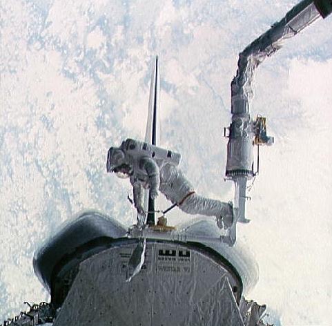 | STS-41-B - Views of the extravehicular activity during STS 41-B - Credit: NASA. 9,183 bytes. 384 x 384 pixels. |