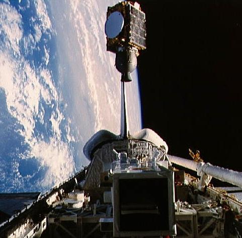 STS-51-G - Arabsat communications satellite deploying from Discovery's payload bay - Credit: NASA. |