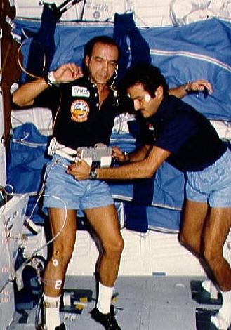 STS-51-G - Payload specialists Baudry and Al-Saud conduct Postural