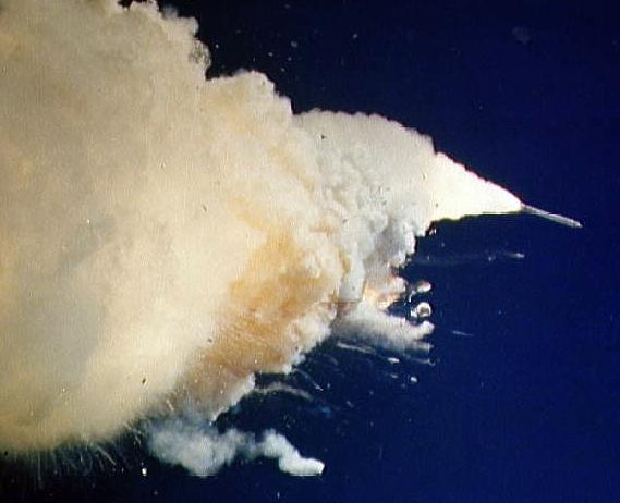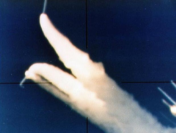 STS-51-L - View of the SRB problems with Challenger after launch