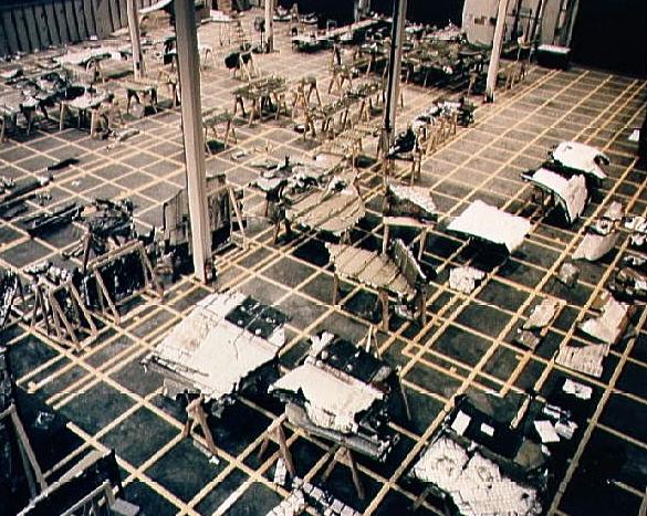 STS-51-L - View of debris in the Lockheed Log building - Credit: