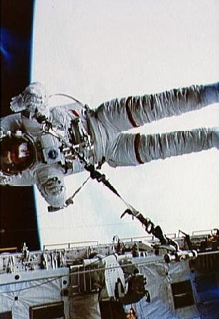 ![]() | STS-6 - Views of EVA performed during STS-6 - Credit: NASA. |