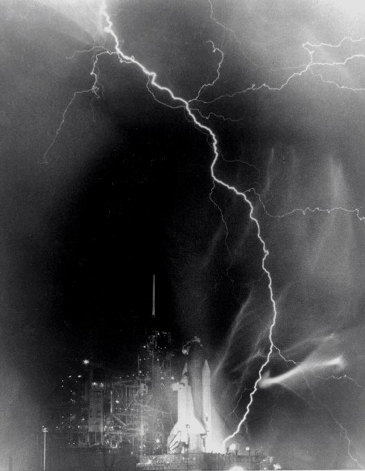 A powerful electrical storm created an eerie tapestry of light in the skies near Space Shuttle