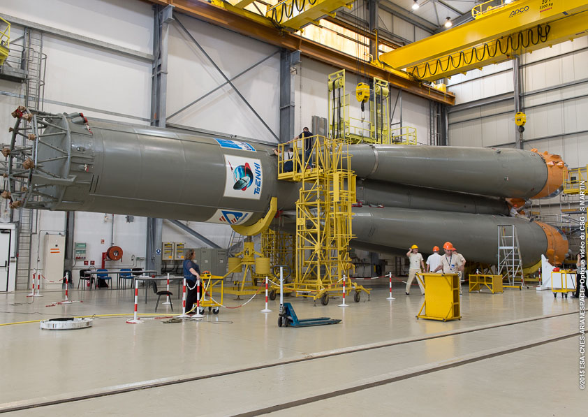 ![]() A Soyuz rocket is prepared for launch March 27 from French Guiana. Credit: ESA/CNES/Arianespace |