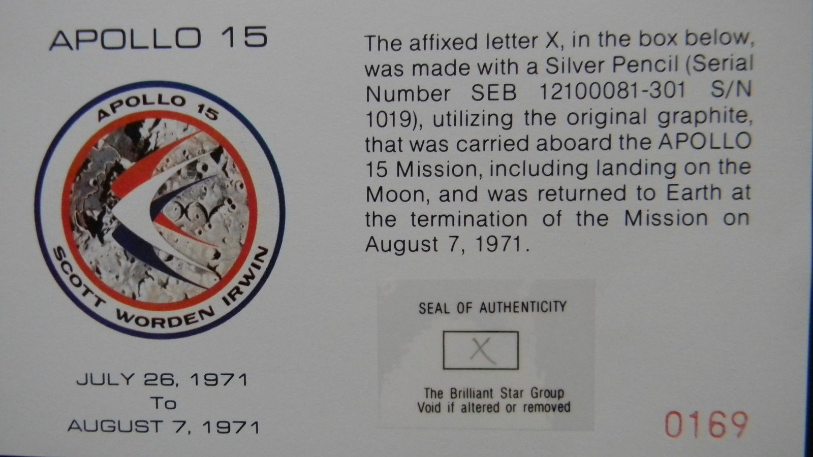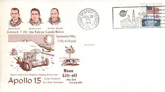 ![]() Moon cover, aboard the L.M. "Falcon" Launch cancel KSC, board cancel USS Okinawa. |