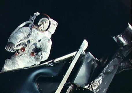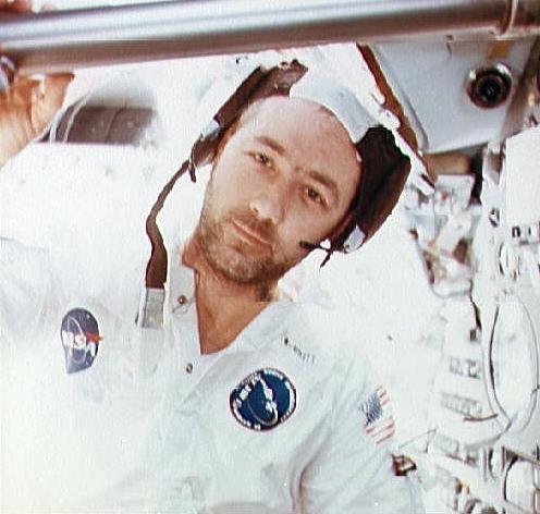 Apollo 9 - Astronaut Russell Schweickart photographed during EVA - Credit: NASA. |