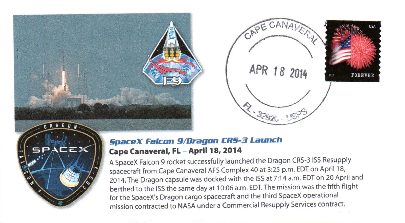 ![]() Launch cancel Cape Canaveral, Hand cancel. Credit: #401 |