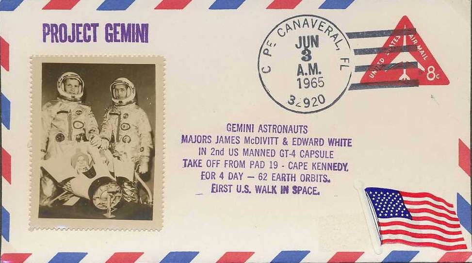 A space walk was hurriedly included after the Russian first in Voskhod 2. White seemed to have a lot more fun than Leonov and McDivitt took the pictures that came to symbolize man in space. With this flight the US finally started to match Russian flight durations.