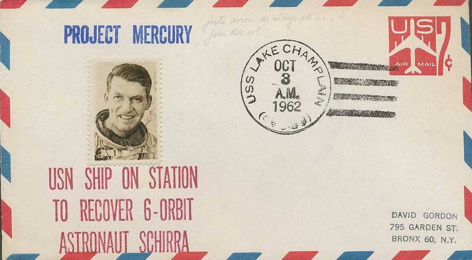 ![]() Second Recovery Ship "USS Lake Champlan" cancel. Credit: #410 |