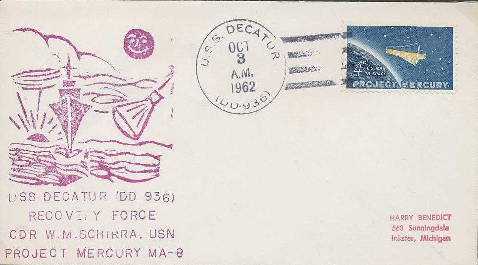 ![]() Second Recovery Ship "USS Decatur" (DD-936) cancel. Credit: #410 |