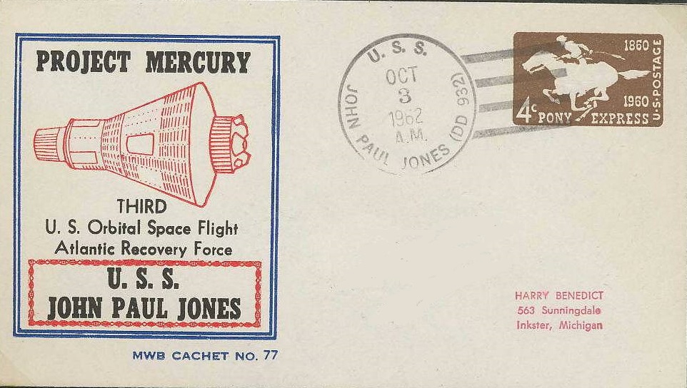 ![]() Second Recovery Ship "USS Lohn Paul Jones" (DD-932) cancel. Credit: #410 |