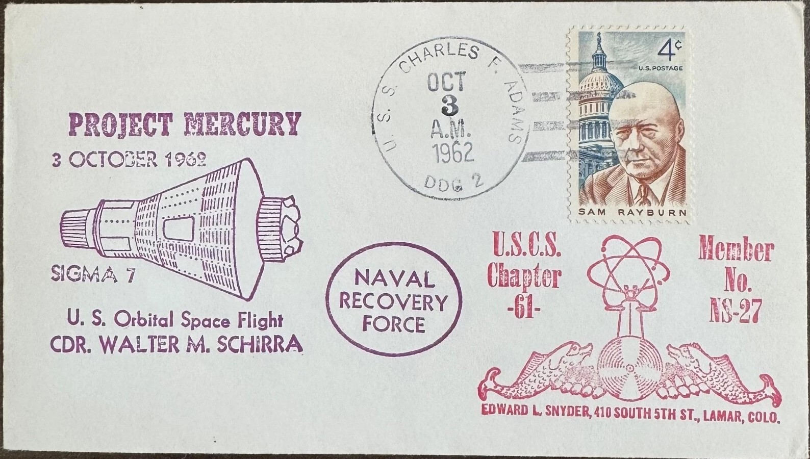 ![]() Second Recovery Ship "USS Charles F. Adams" cancel. Credit: #411 |