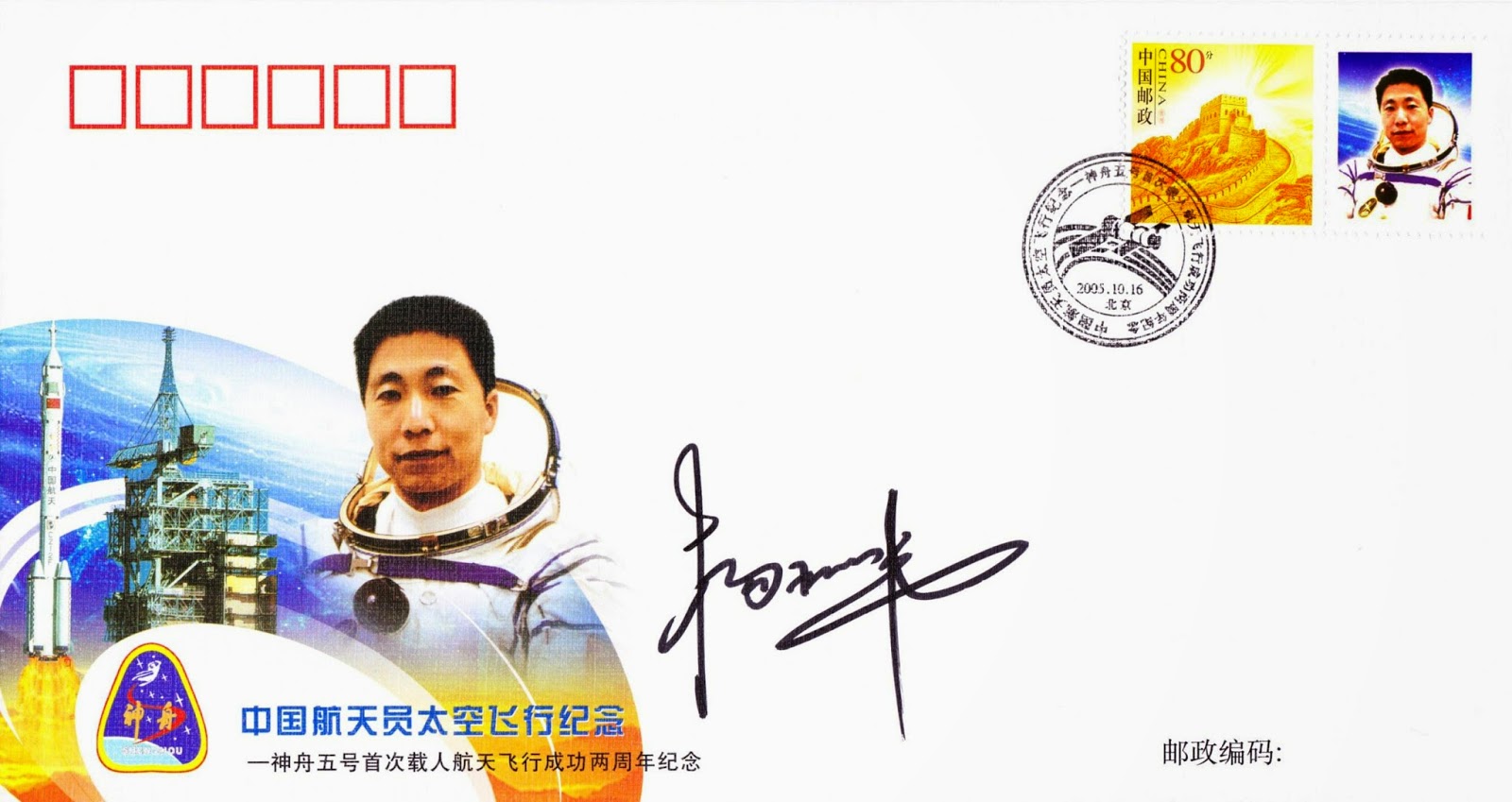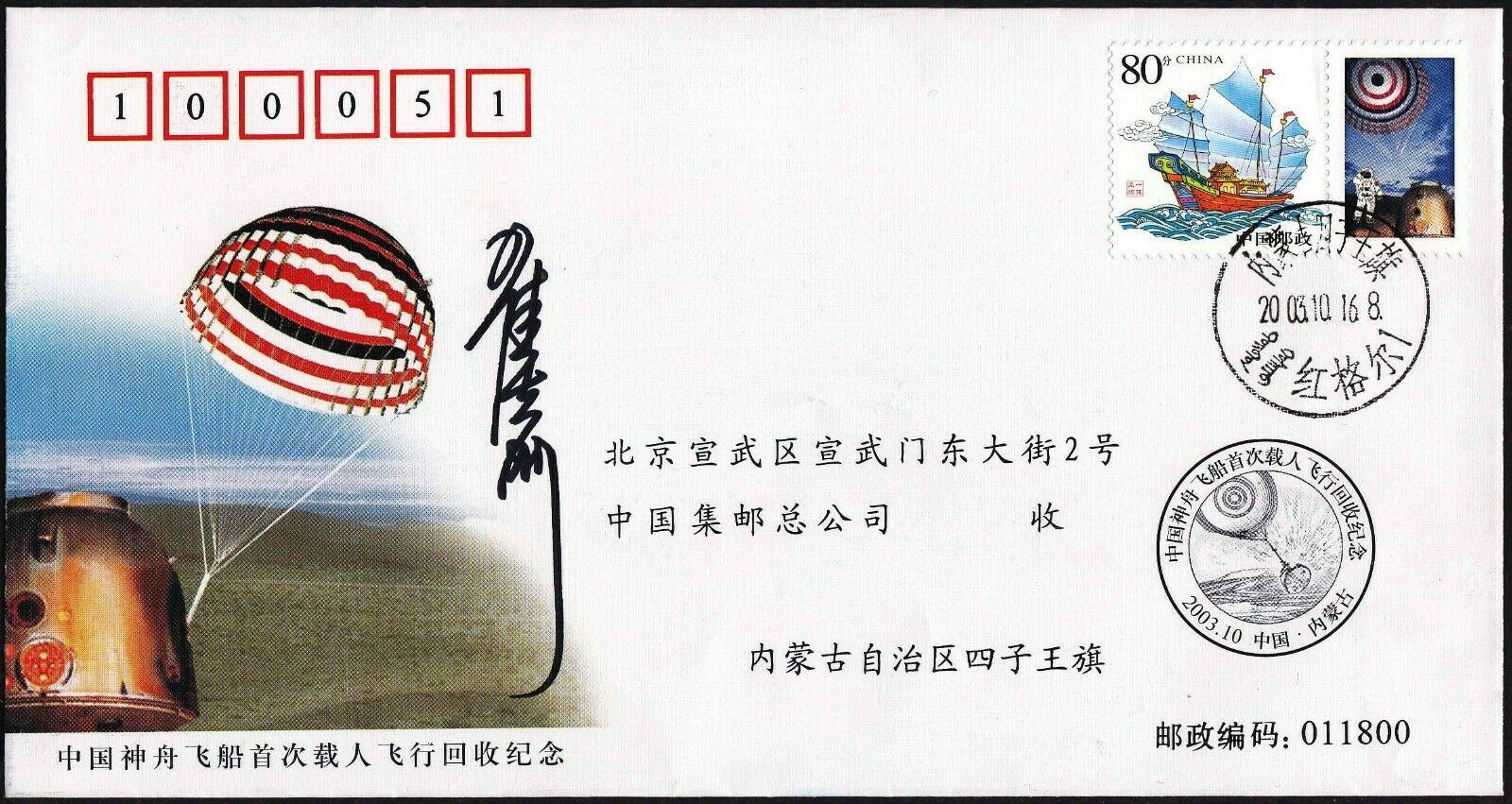 Landing Shenzhou 5, signed by Liwei. Credit: #402