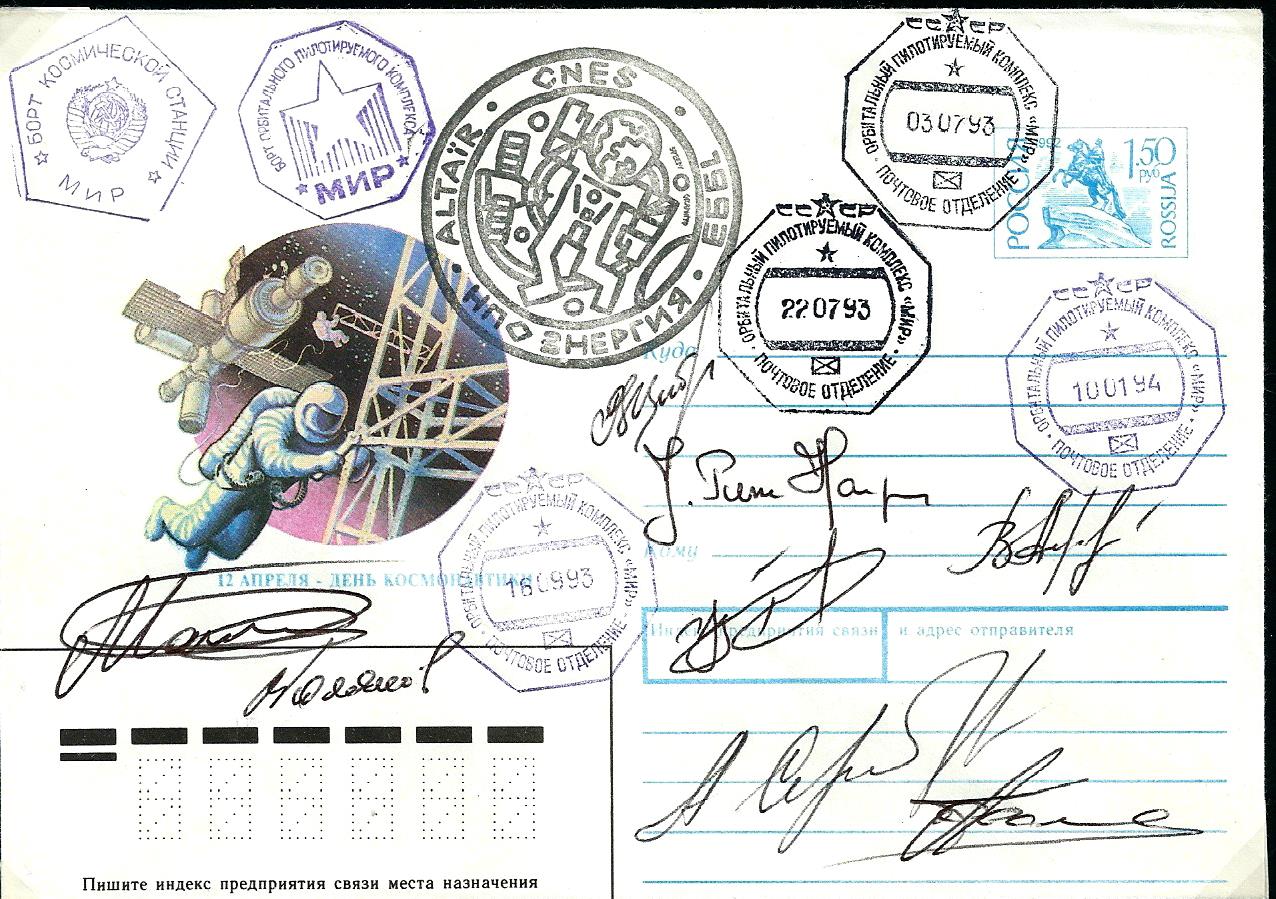 ![]() Launch cancel Baikonur and special overprint stamps with TP surtaxe cancel. Send registrated, signed by crew |