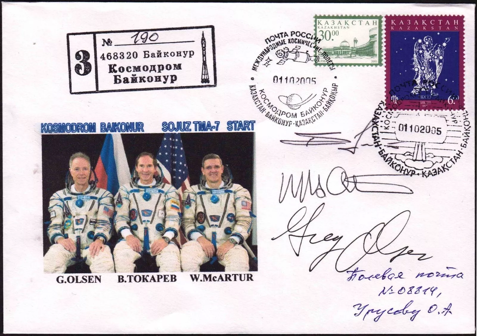 ![]() Special launch cancel Baikonur, signed by the crew. Credit: #411 |