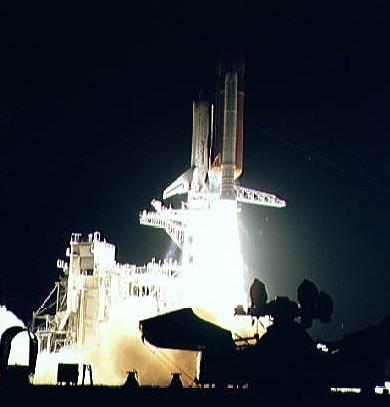 | STS-38 - STS-38 Atlantis, OV-104, lifts off from KSC LC Pad during night launch - Credit: NASA. 16,433 bytes. 390 x 390 pixels. |