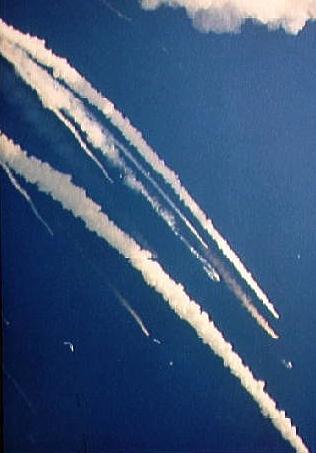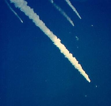 STS-51-L - View of the SRB problems with Challenger after launch