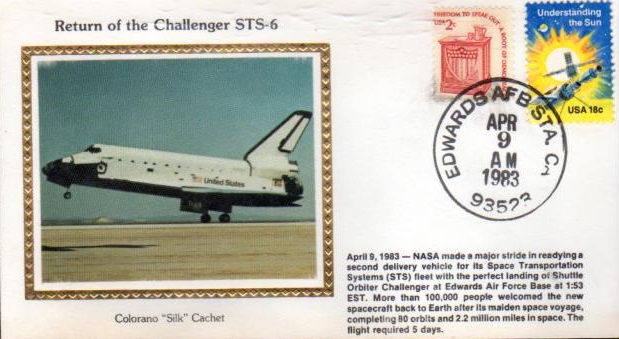 Manned four crew. First flight of space shuttle Challenger; deployed TDRSS. Payloads: Deployment of Tracking and Data Relay Satellite (TDRS)-A with Inertial Upper Stage (lUS)-2, Continuous Flow Electrophoresis System (CFES), Monodisperse Latex Reactor (MLR), Night/Day Optical Survey of Lightning (NOSL) experiment, three getaway specials (GAS).