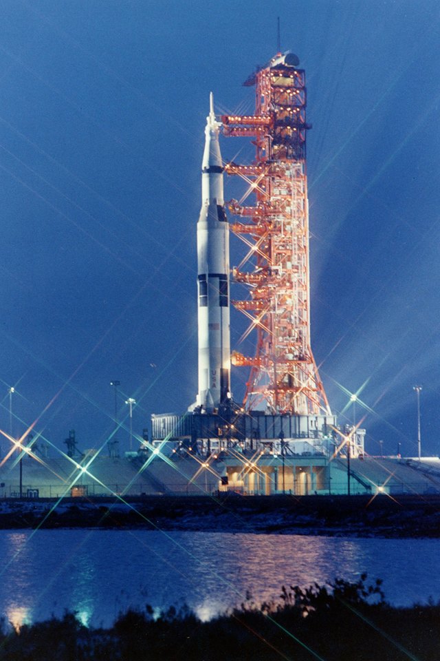 ![]() The 363-feet tall Apollo 16 (Spacecraft 113/Lunar Module 11/Saturn 511) space vehicle on pad 39A Kennedy Space Center (KSC) at night during a Countdown Demostration Test (CDDT). |