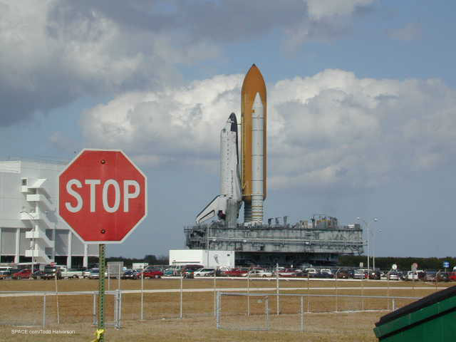 STS-98 rolls out to Launch Pad 39-A.