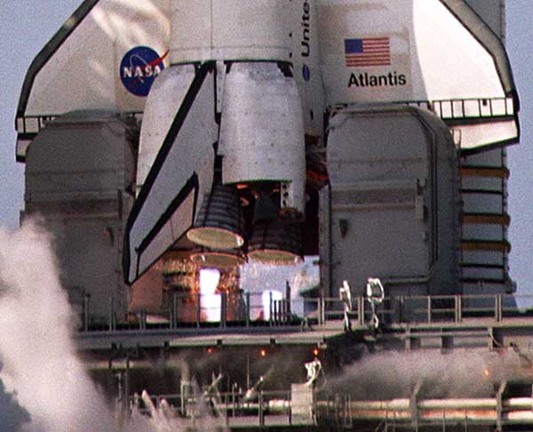 Close-up photo of the three main engines before liftoff.