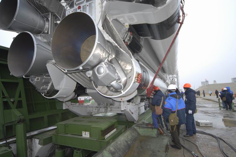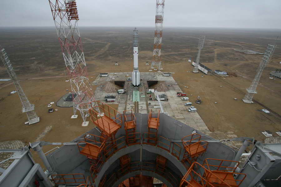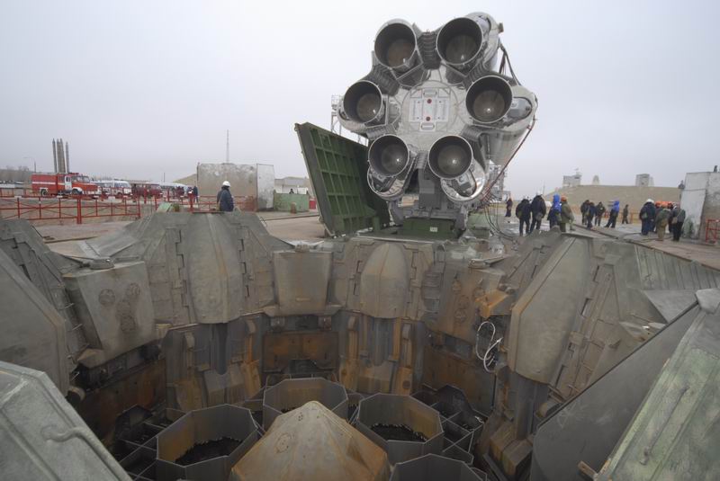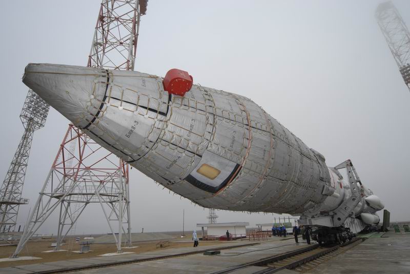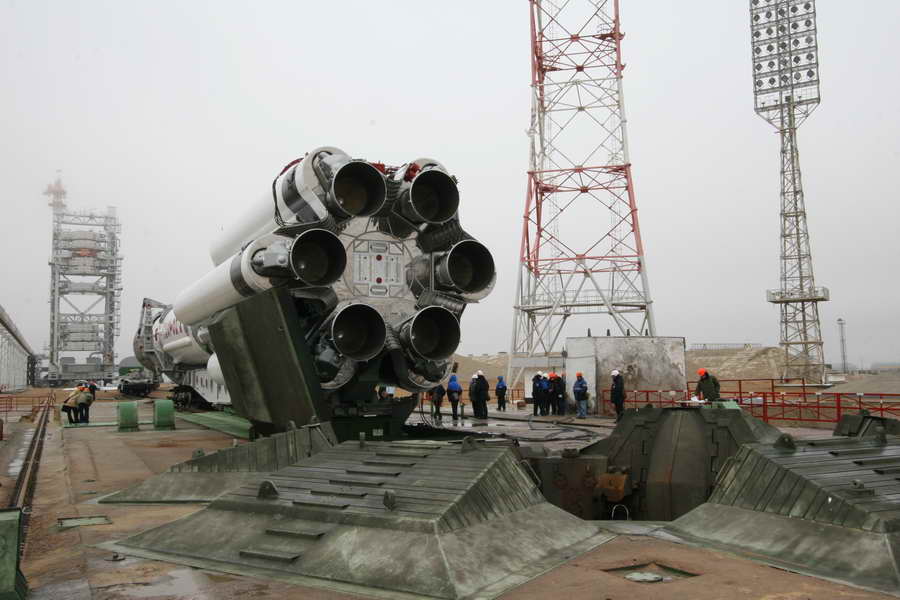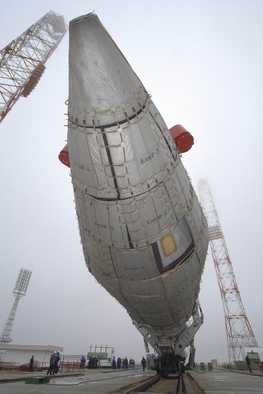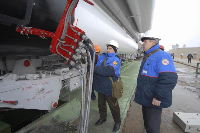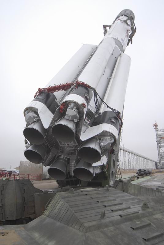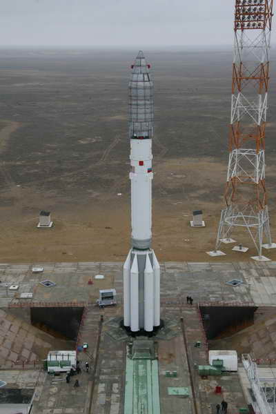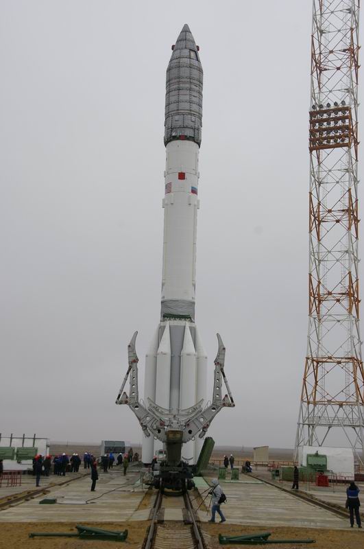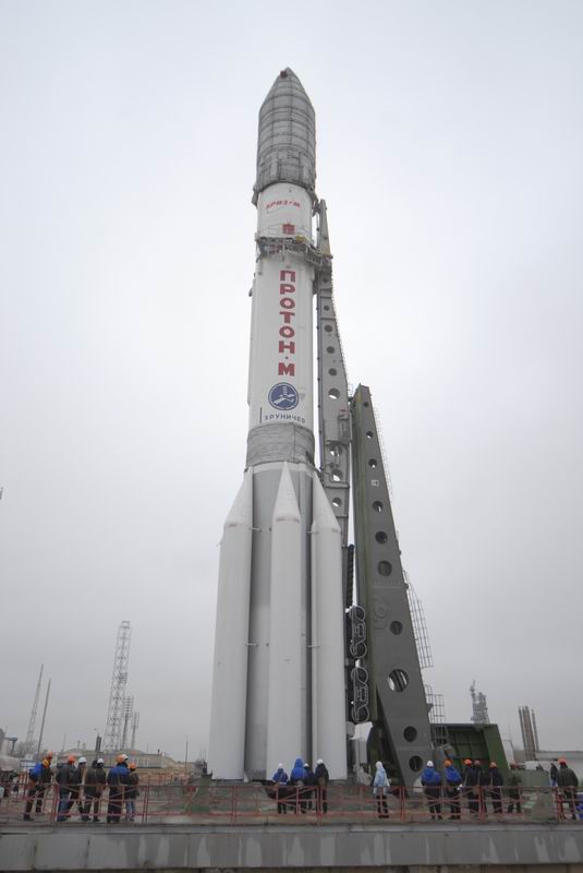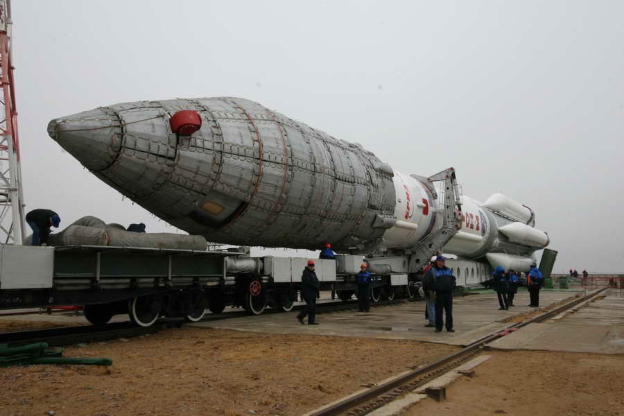 14 Nov 2007: Preparation of the Proton-M rocket on the launch site.