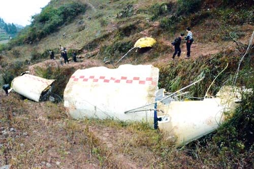 ![]() Debris splashed down on a hill near Limin village (N274336E1060911) within the A0127/12 NOTAMed zone. No casualties were reported (80,000 people had been moved to shelter) |
