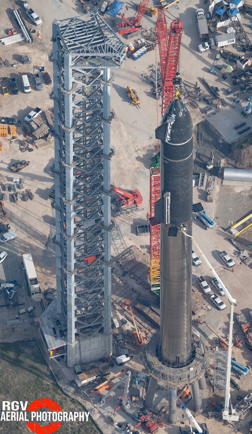 ![]() Ship 20 on Booster 4, World′s Tallest Spacecraft/Launcher ever stacked (~120 meters) . Photo credit: Cosmic Perspective |