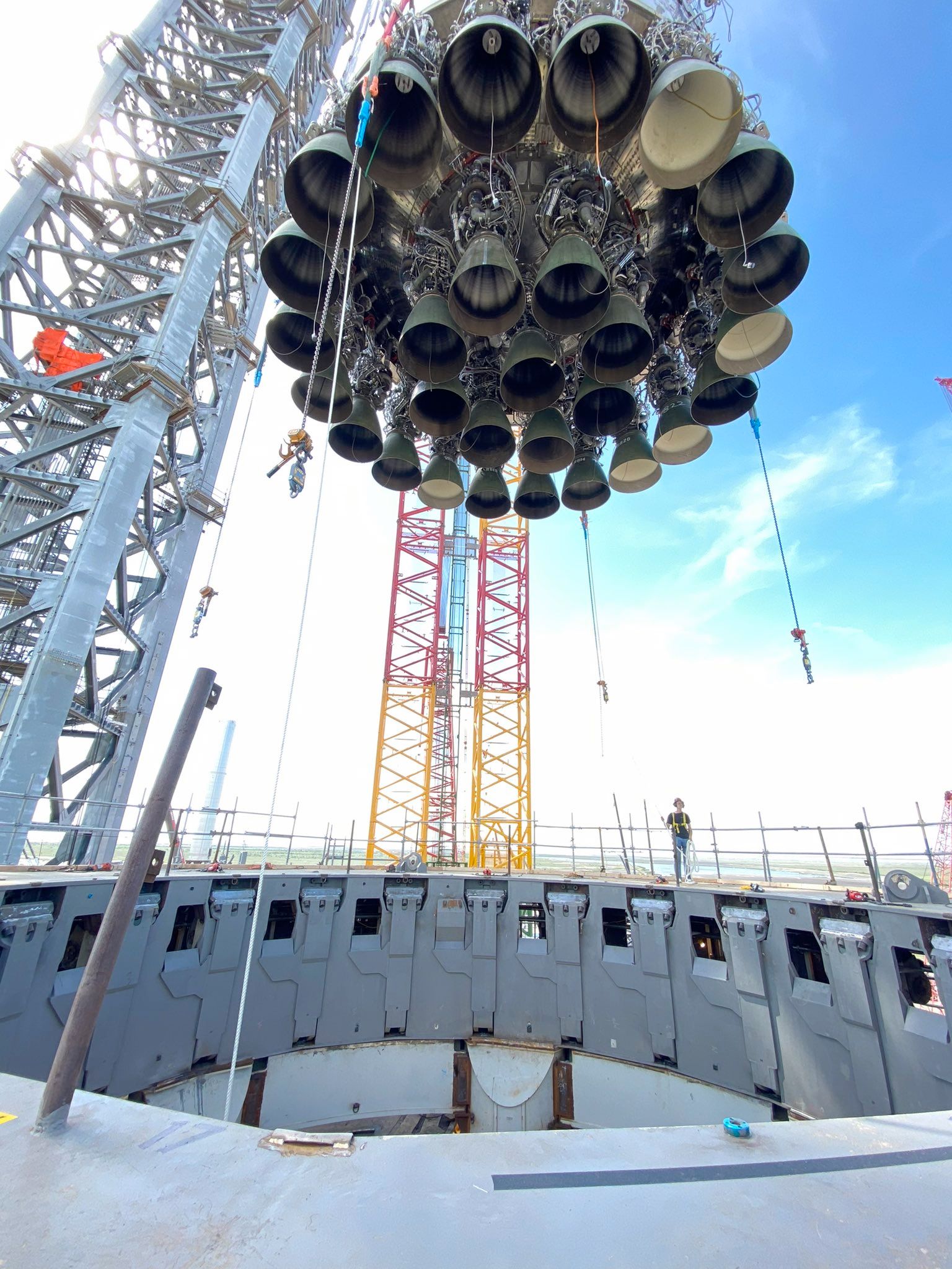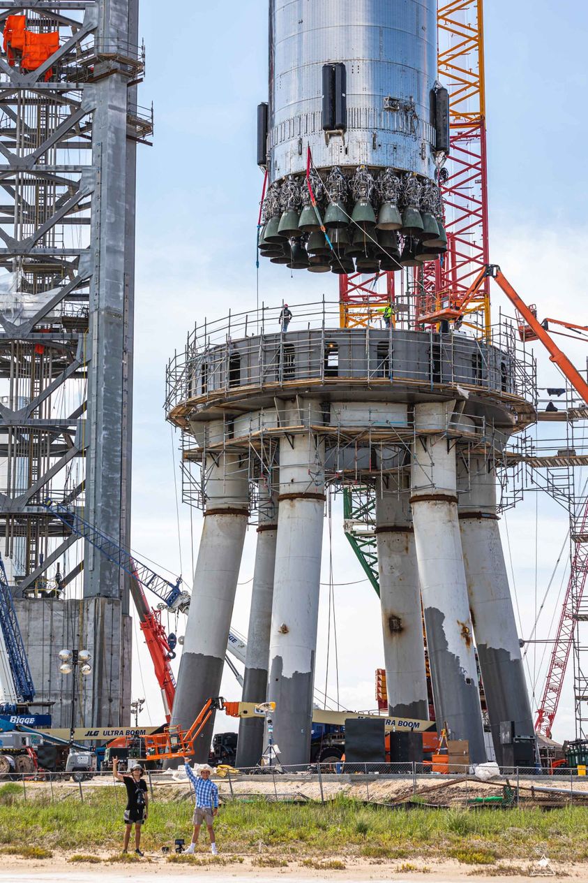 ![]() Ship 20 placing on Booster 4. Photo Credit: Starship Gazer |