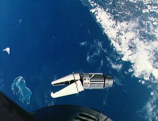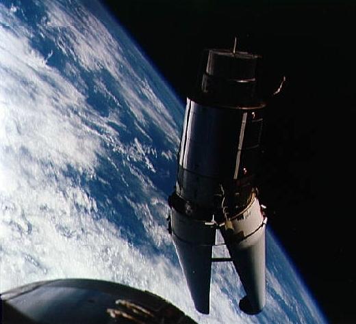 Earth 402 kilometers up. Without the help of Agena, high- altitude flight might take too much spacecraft