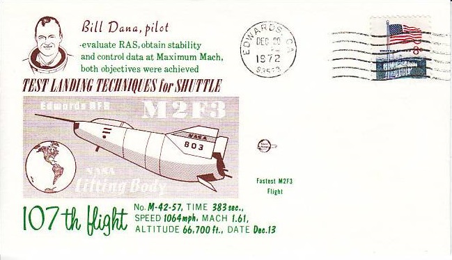 | M2-F3 #19 | October 5, 1972 | Dana | 1.370 | 1,455 | 66,300 | 00:06:16 | 100th lifting body flight  |
